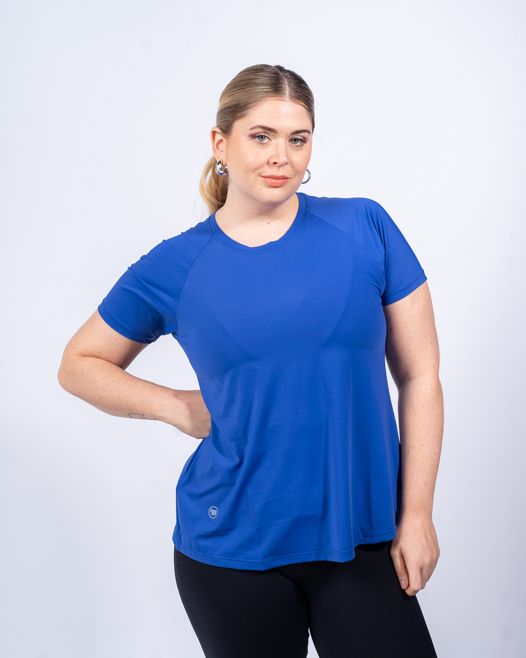 La modelo usa talle L y XL de remera y L de Top.